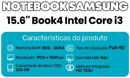 Notebook Samsung NP750XGJ CI3-13 8GB 256GB 15″ W11