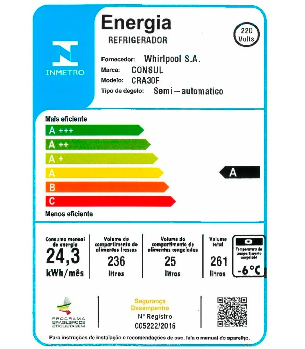 Geladeira 261 Litros Consul Degelo Seco Branca Gavetão Hortifruti – CRA30FB
